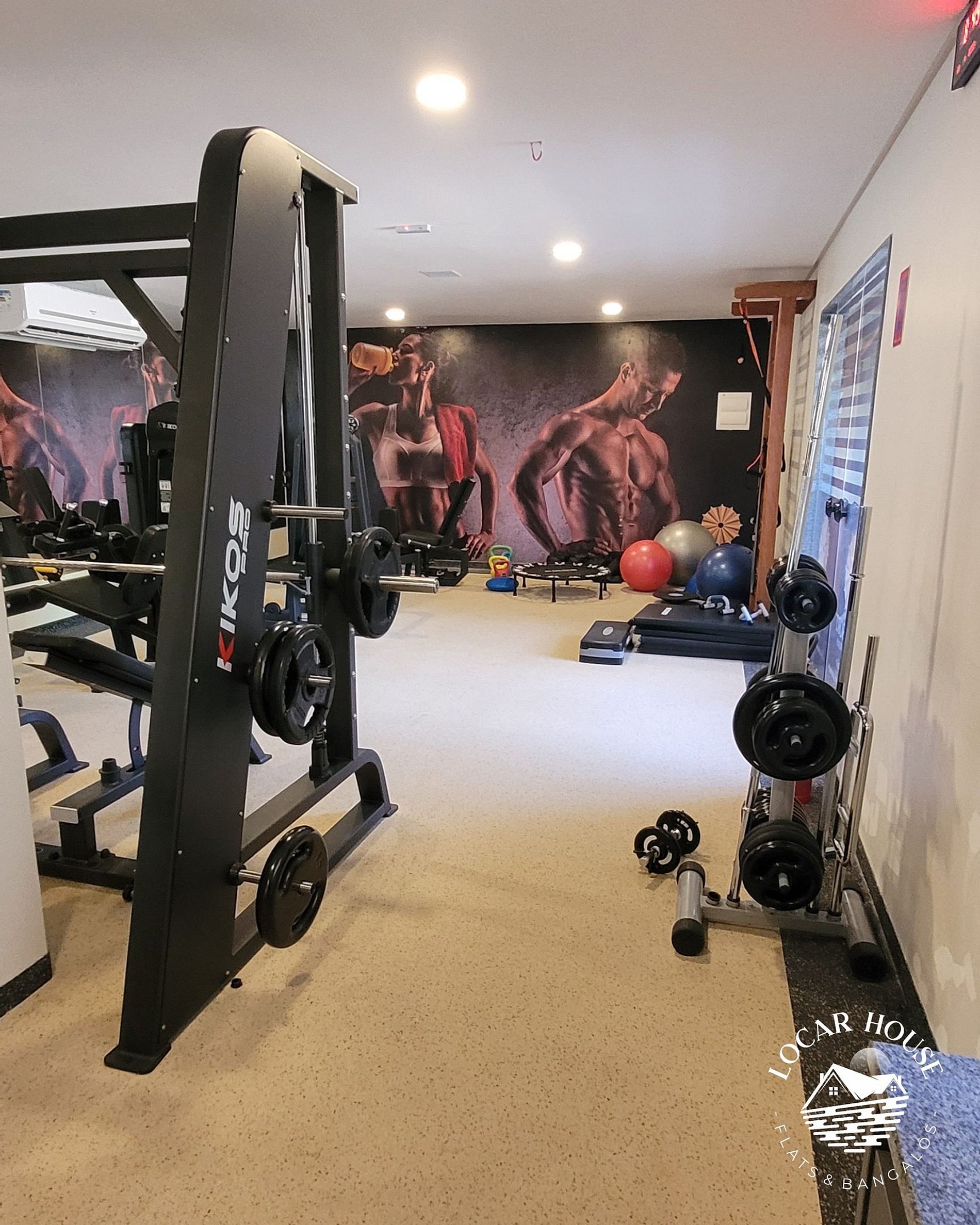 The bedroom has a double bed, air conditioning, and a Smart TV, ensuring comfort and rest.
