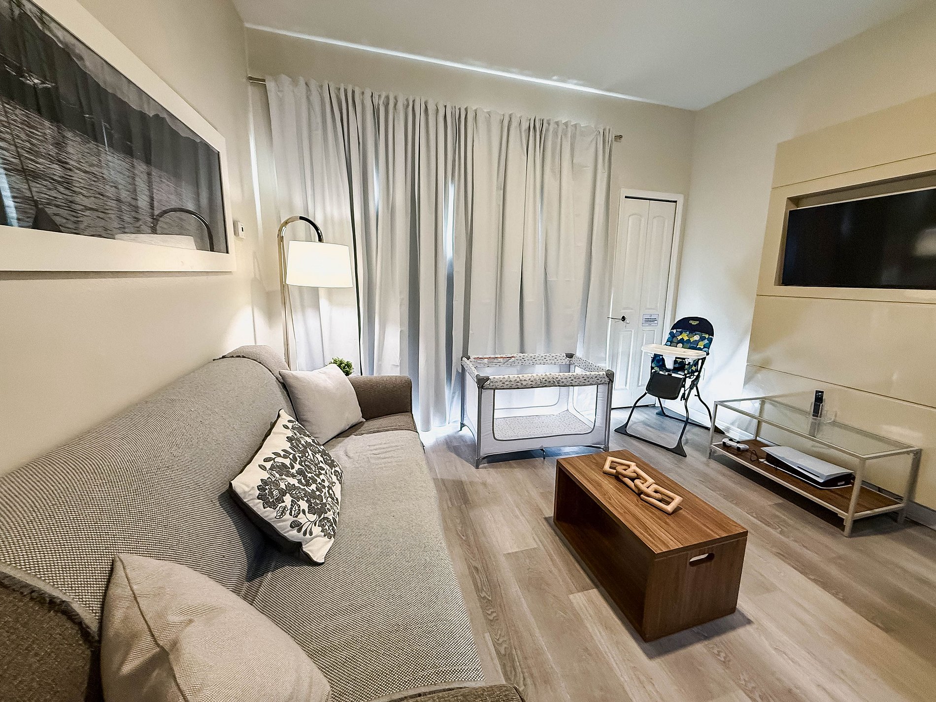 For families, we provide a portable crib and high chair free of charge, ensuring comfort and peace of mind for everyone.