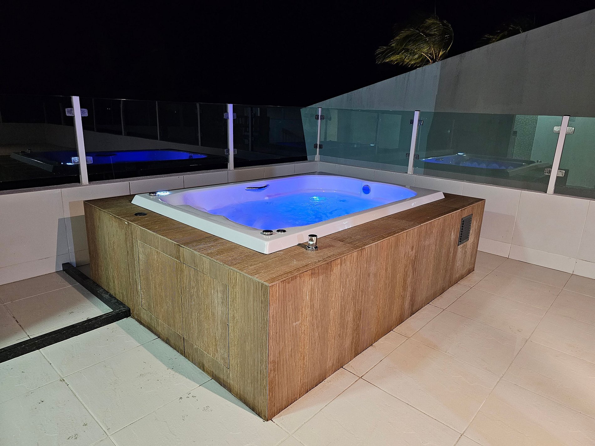 A private jacuzzi, perfect for unwinding after a day at the beach;