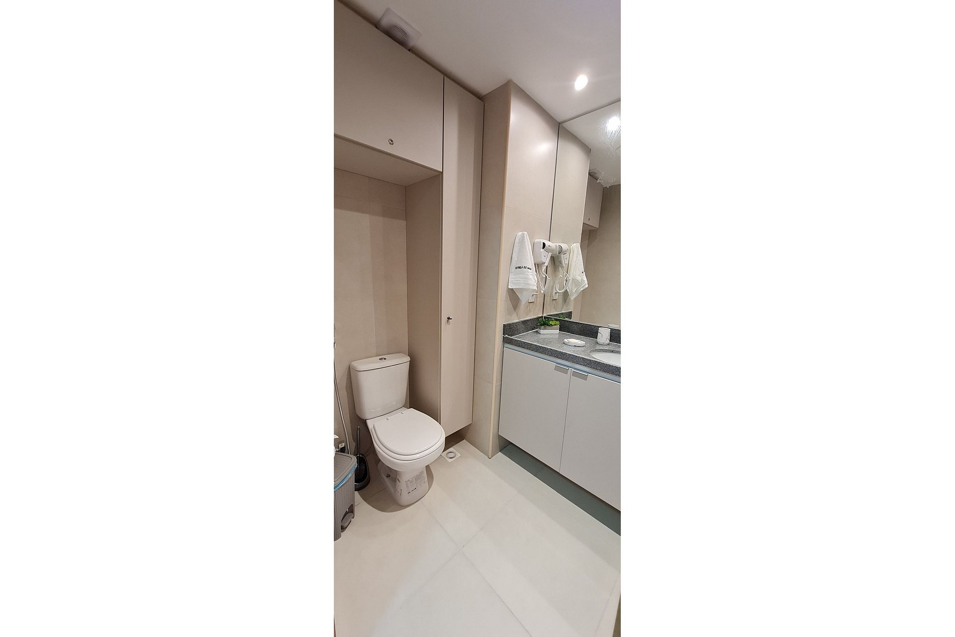 Personal hygiene items, toilet paper, and cleaning products are provided in an initial courtesy amount. Replenishment during the stay must be made by guests.