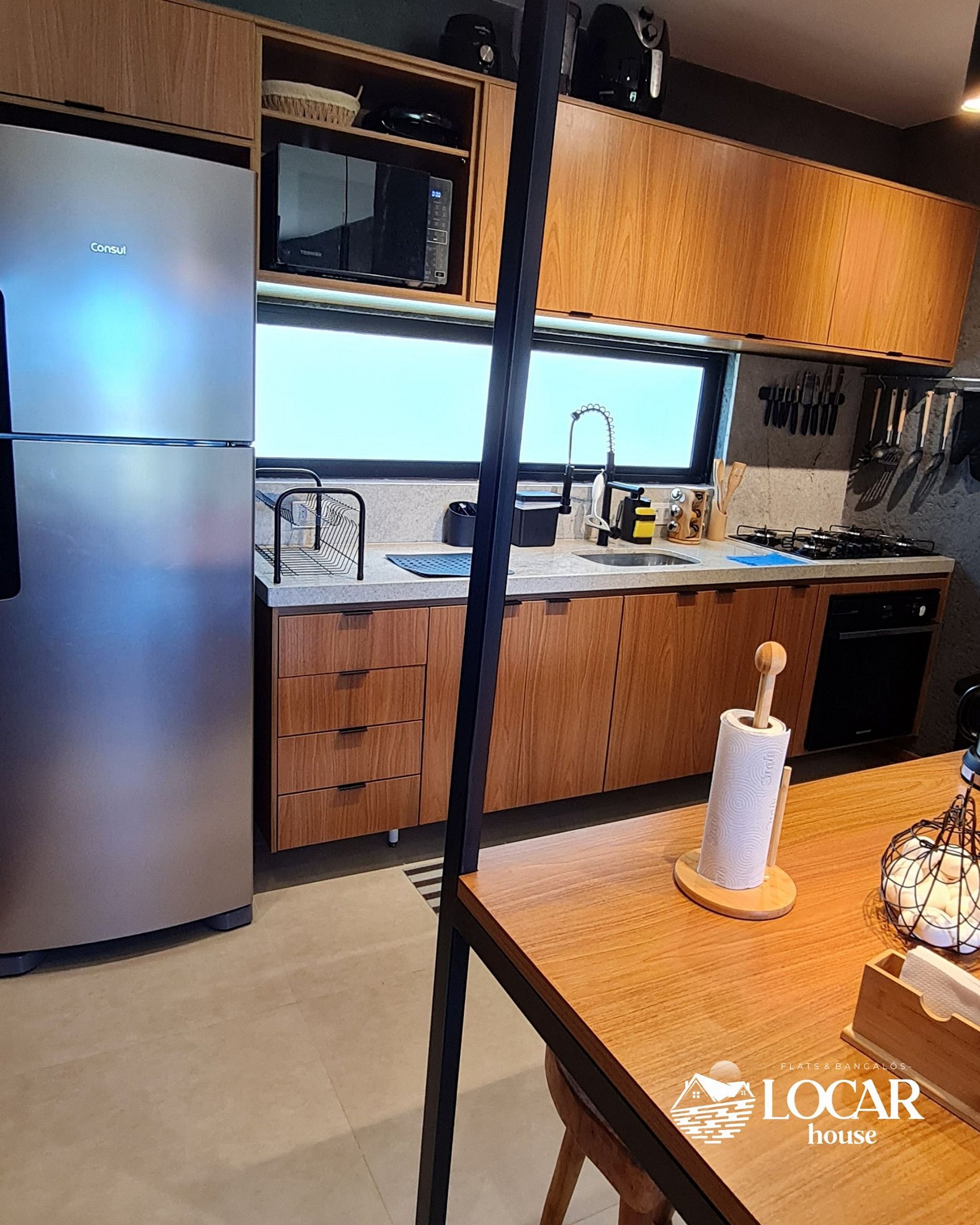 Fully Equipped Kitchen: refrigerator, electric oven, cooktop, microwave, air fryer, sandwich maker, coffee maker, blender and various utensils. We provide glassware (wine, beer, whisky and champagne) as well as acrylic cups for pool or beach use.