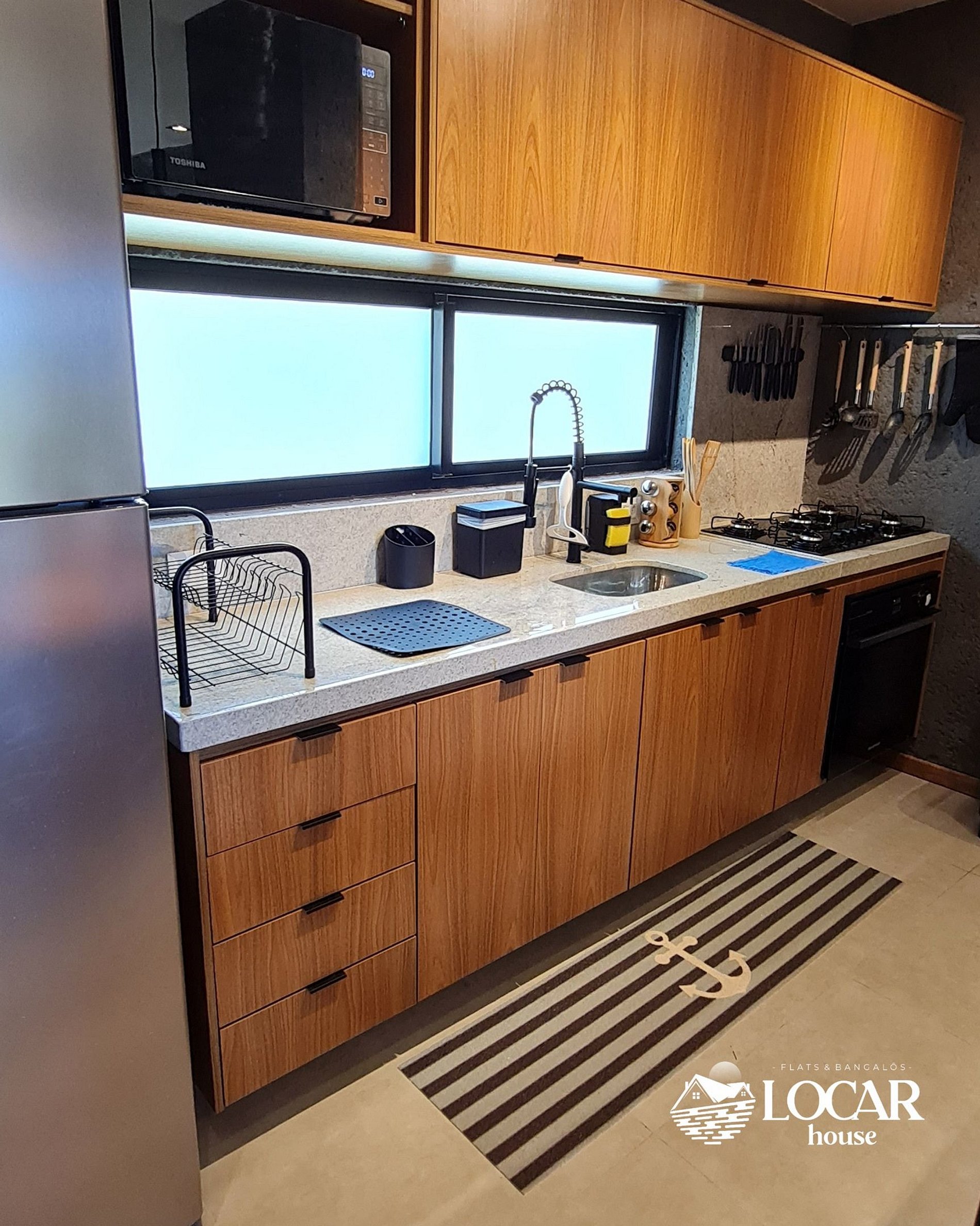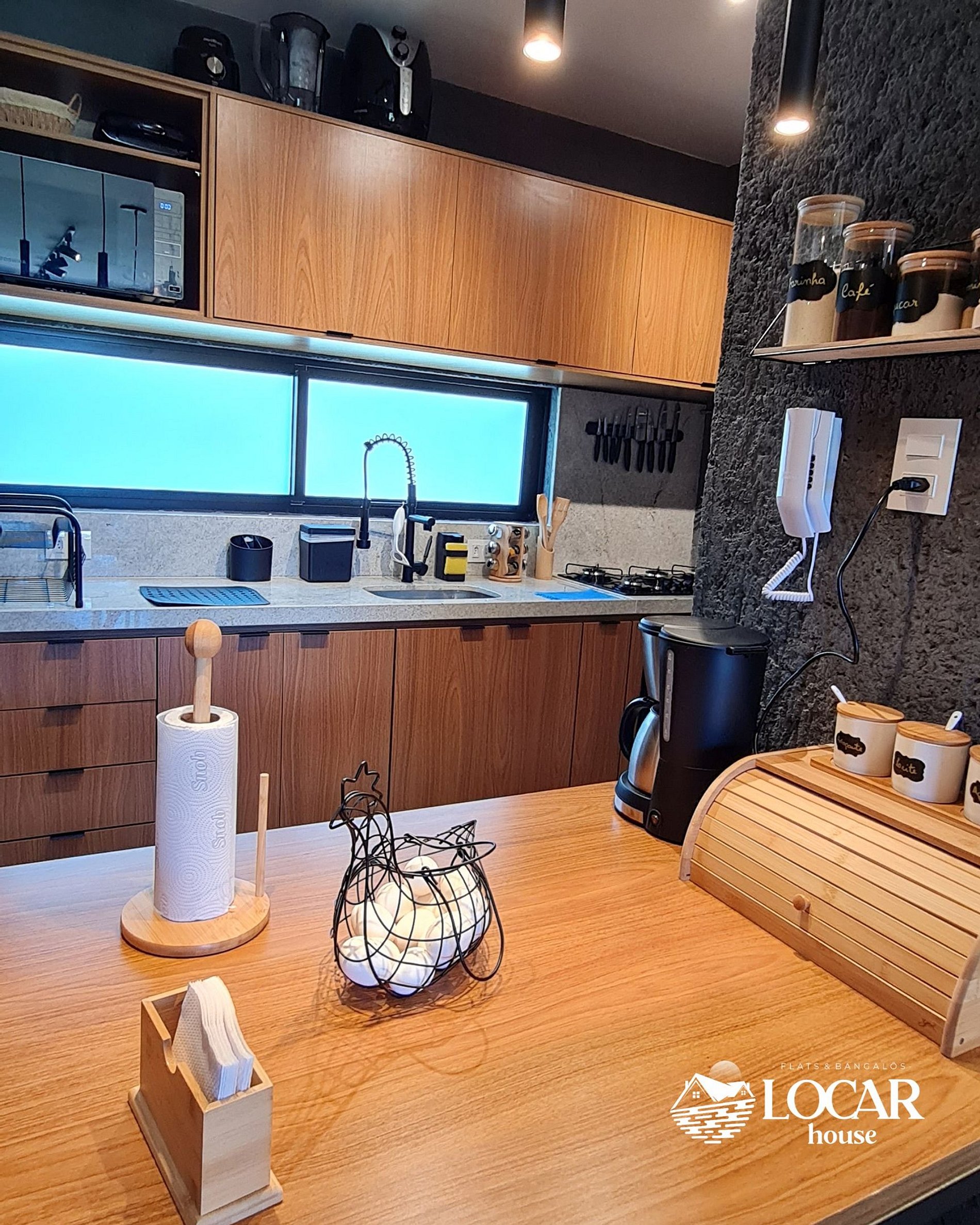 Fully Equipped Kitchen: refrigerator, electric oven, cooktop, microwave, air fryer, sandwich maker, coffee maker, blender and various utensils. We provide glassware (wine, beer, whisky and champagne) as well as acrylic cups for pool or beach use.