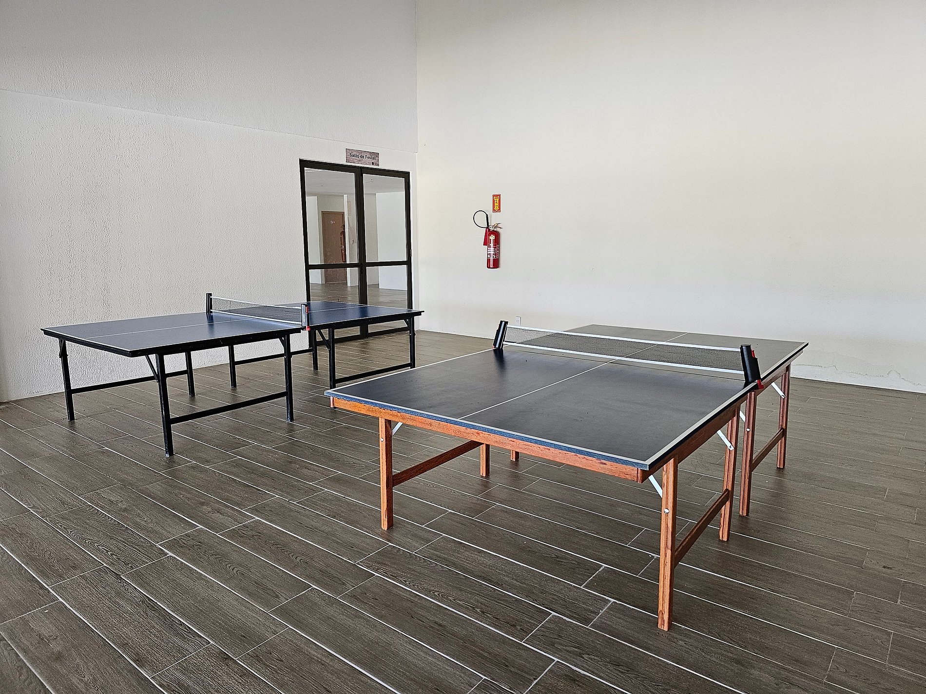 Espacios de recreación: mesa de ping-pong, “futmesa,” sala de juegos, sala de TV/ocio