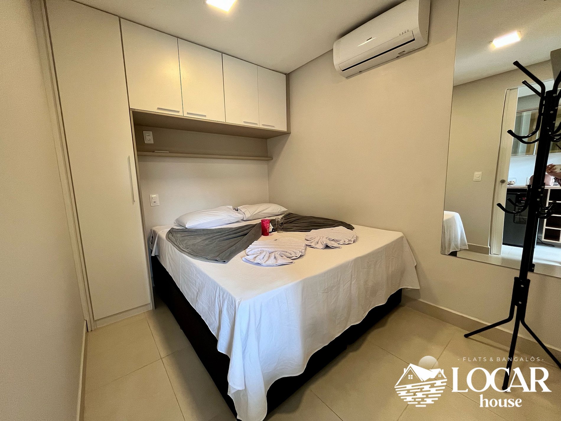 El dormitorio cuenta con cama doble, aire acondicionado y TV Smart, garantizando comodidad y descanso.