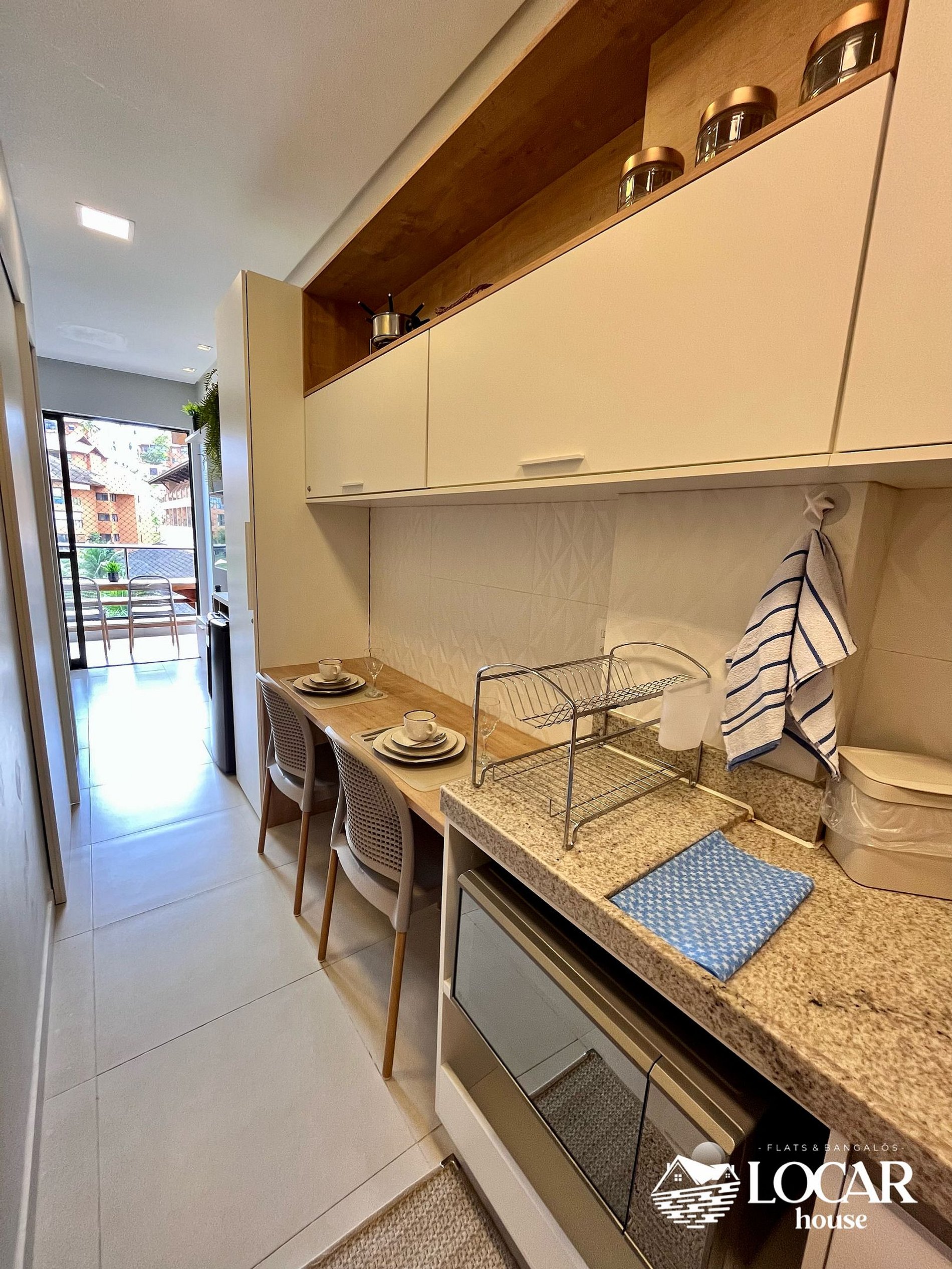 La cocina está totalmente equipada con nevera, horno eléctrico, encimera, microondas, sandwichera, cafetera, licuadora y todos los utensilios domésticos necesarios. También incluye copas de vidrio para vino, cerveza, whisky y espumante, además de versiones de acrílico para uso en la piscina.