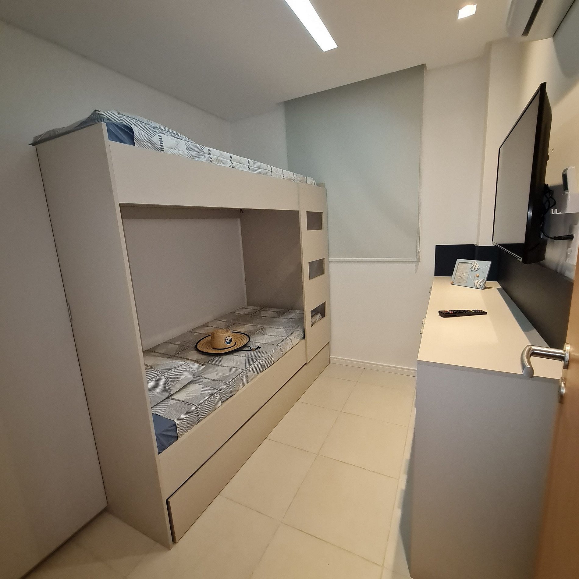 Habitación convertible: litera con cama nido, aire acondicionado y Smart TV.