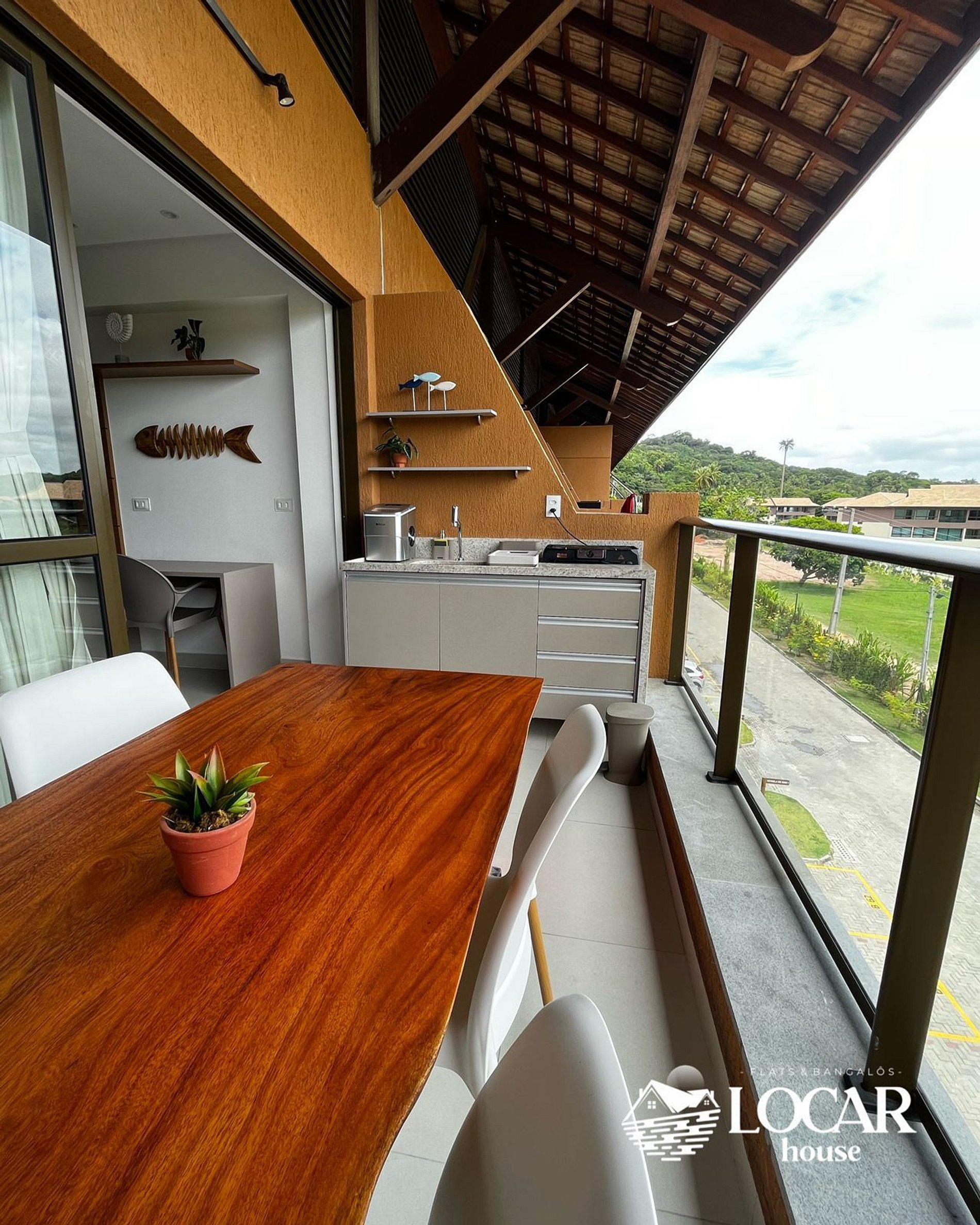 El balcón gourmet cuenta con mesa rústica, parrilla eléctrica, máquina de hielo y cooler, perfecto para momentos de ocio.