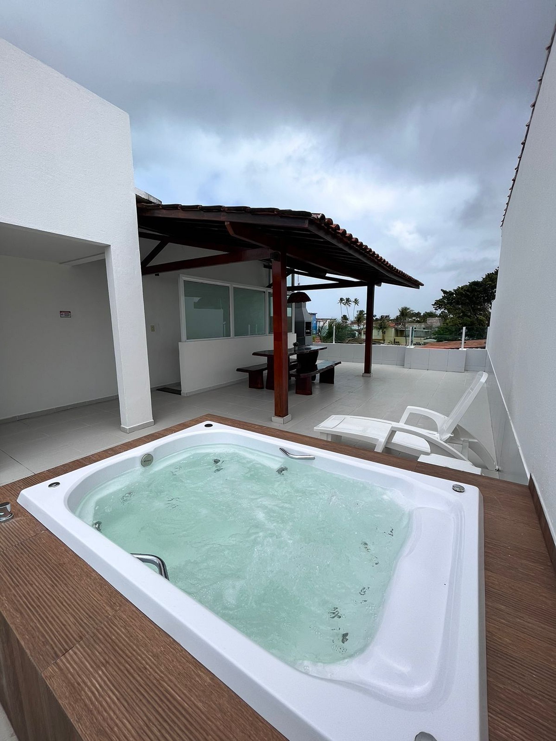 Jacuzzi privativa, perfeita para relaxar após um dia de praia;