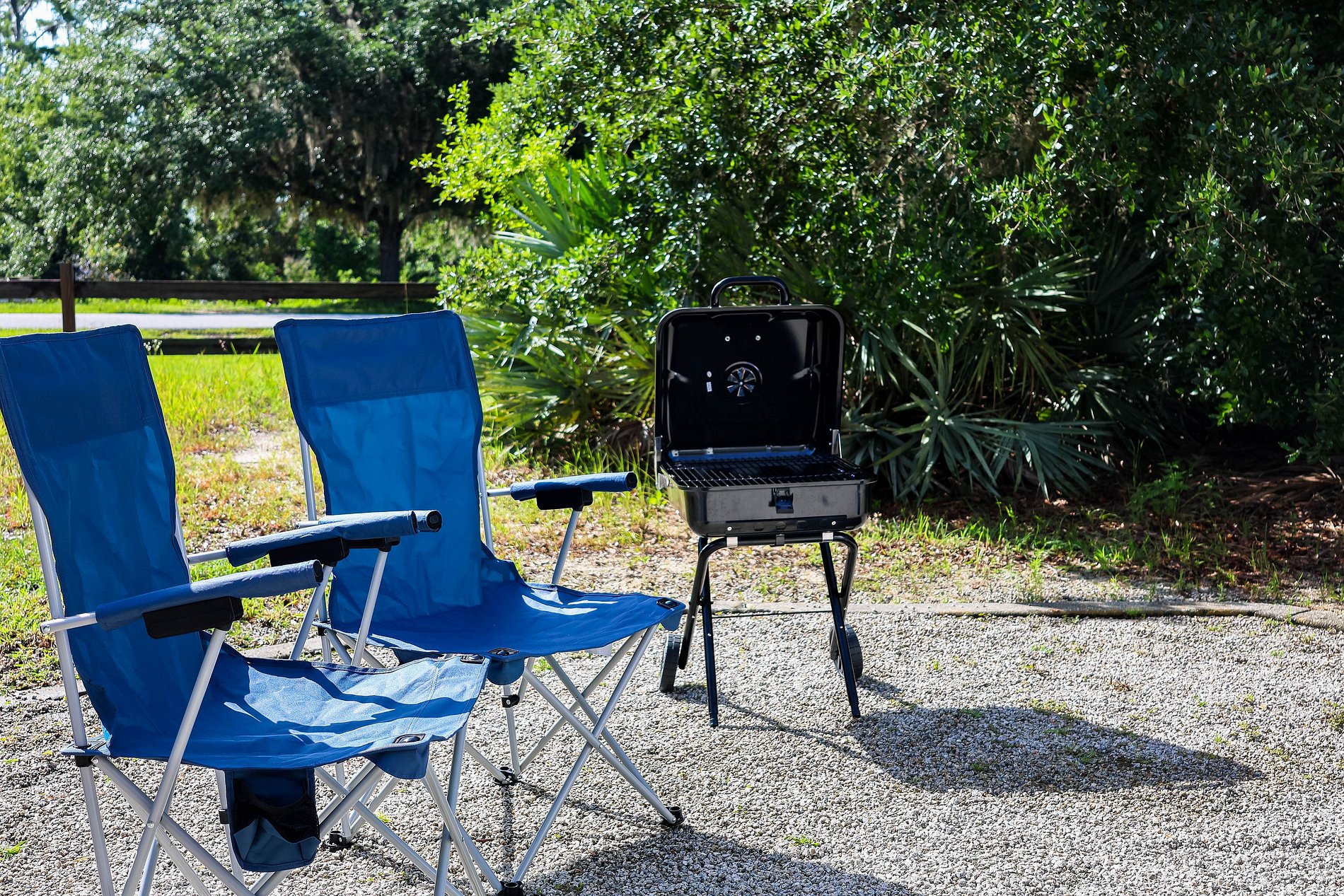 • Churrasqueira a carvão, grelha e fogão a gás (Não incluído o gás)